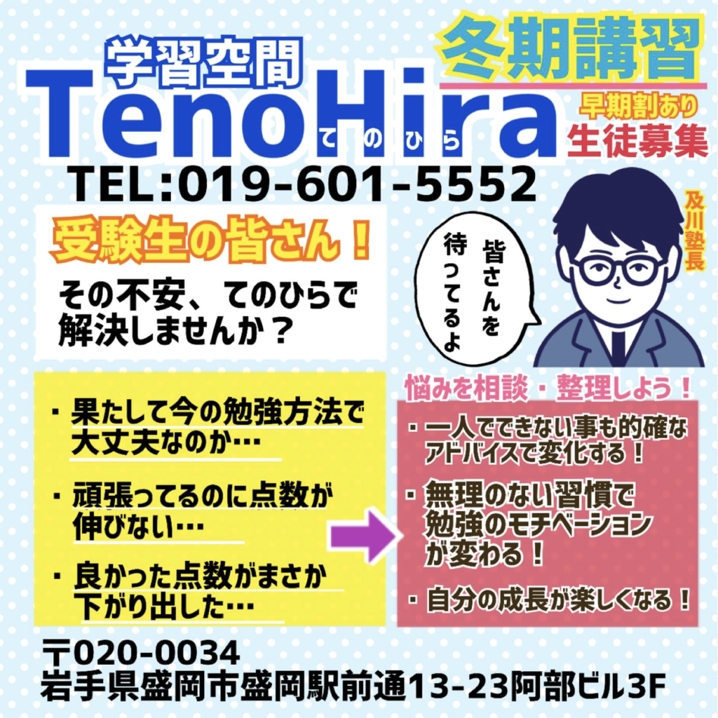 この冬は学習空間てのひらで学習しませんか?